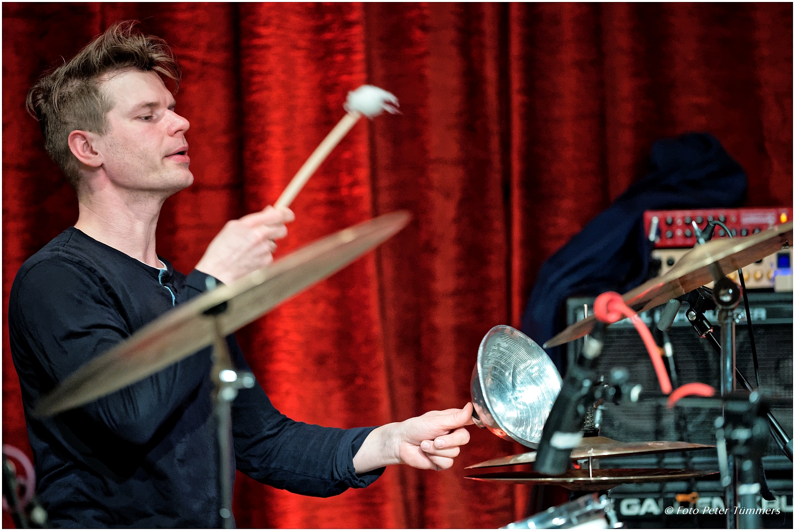 Christian Lillinger 20.12.2016 Nicht Ohne Robert Vol. 16: Robert Landfermann – Kontrabass ; Elisabeth Coudoux – Cello ; Kaja Draksler – Piano ; Philipp Zoubek – prep. Piano ; Christian Lillinger – Schlagzeug © Peter Tümmers