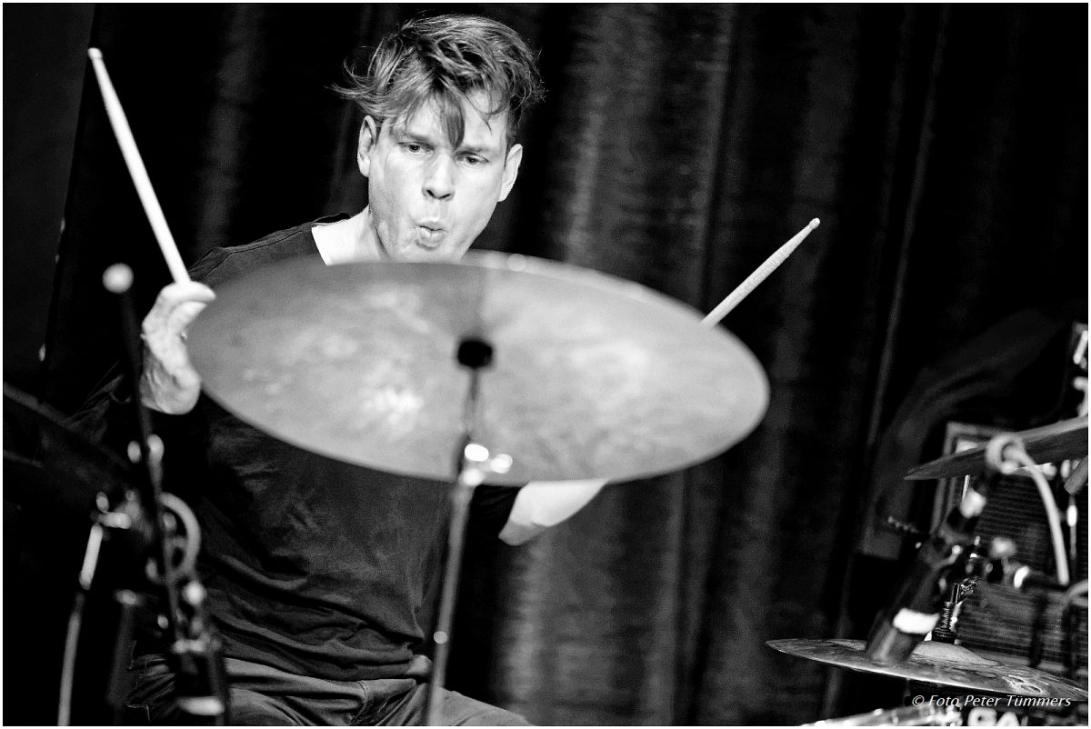 Christian Lillinger 20.12.2016 Nicht Ohne Robert Vol. 16: Robert Landfermann – Kontrabass ; Elisabeth Coudoux – Cello ; Kaja Draksler – Piano ; Philipp Zoubek – prep. Piano ; Christian Lillinger – Schlagzeug © Peter Tümmers