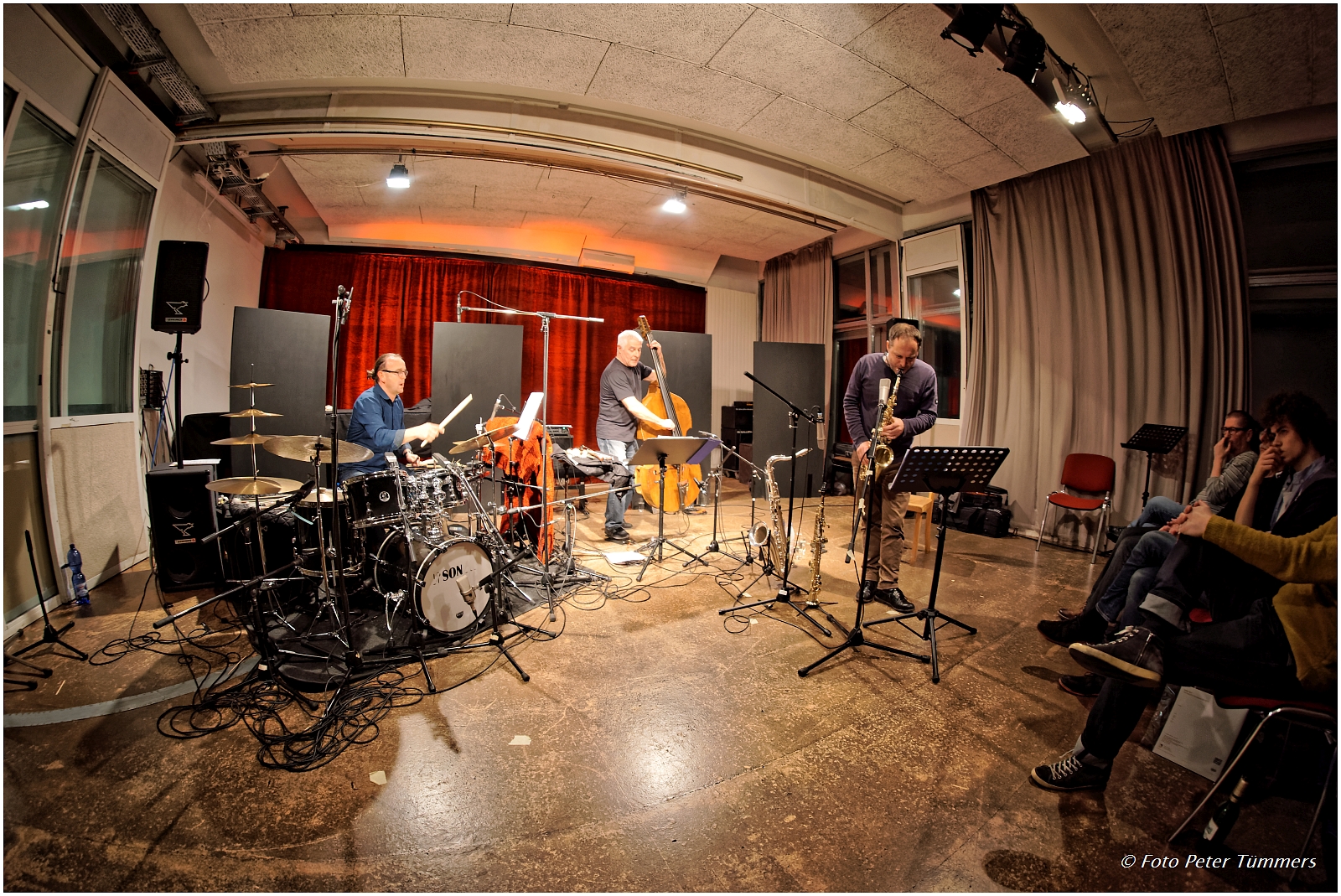 BEYOND 8.11.2016 Jürg Wickihalder – saxes ; Barry Guy – bass ; Lucas Niggli – drums © Peter Tümmers